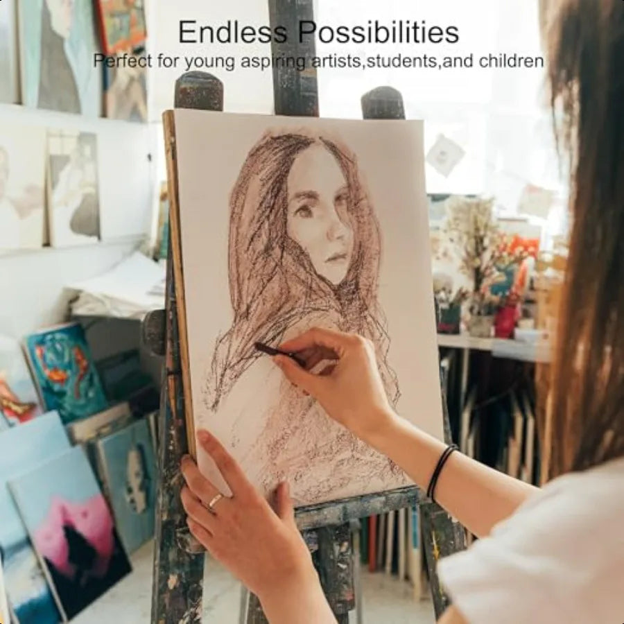 15 Pro Compressed Charcoal Drawing Set with Blending Stumps Soft Medium Hard and White Charcoal Sticks