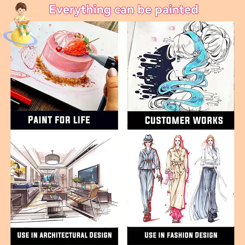 168 Color Double-Ended Alcohol Marker Pen, Permanent Color Development, Painting, Sketching, Notes,