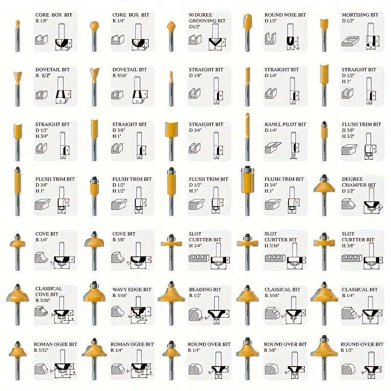 35 Pieces/Set Carbide Tipped Router Bits Set, 1/4 Inch Shanks, Woodworking Router, Premium