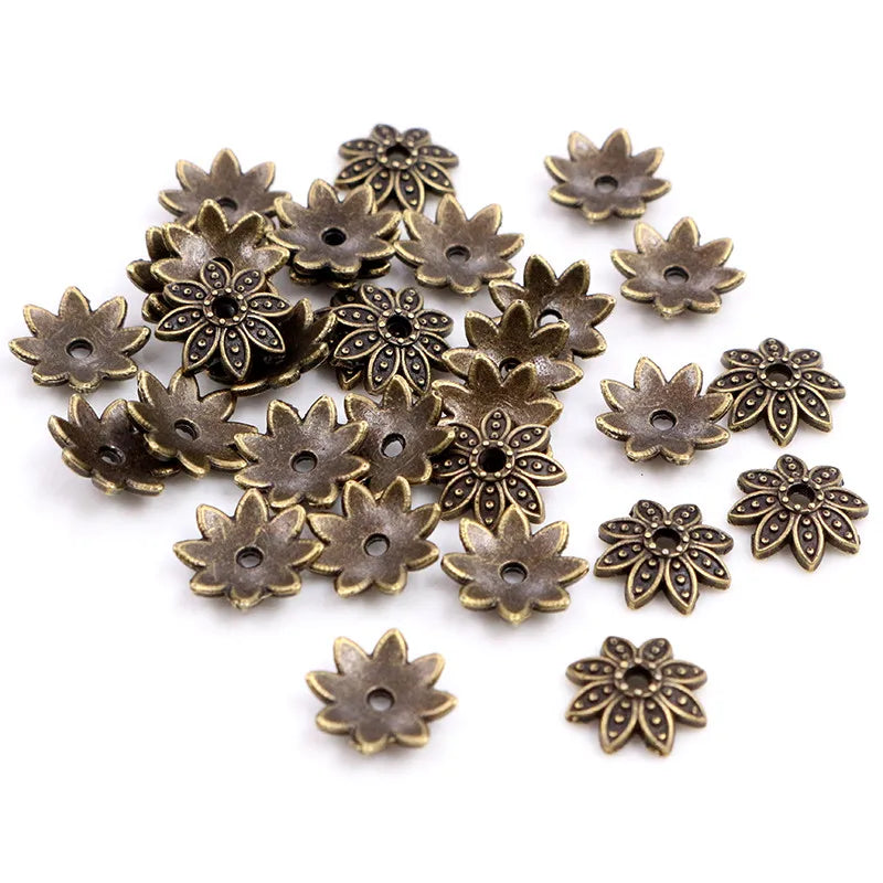 50pcs 8mm 10mm Beads Cap Antique Silver Plated Bronze Flower Shape Spacer Bead End Caps Findings