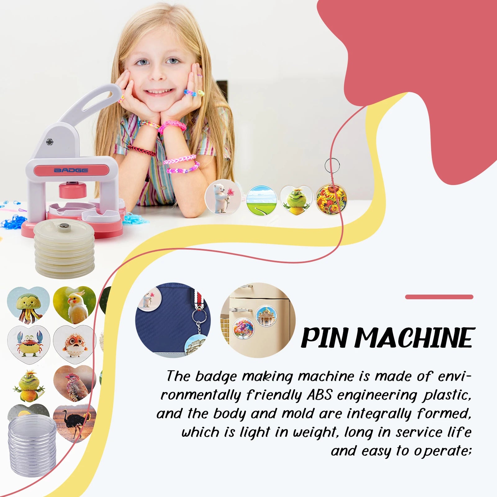 Button Maker Machine Installation-Free DIY Button Pin Maker Badge Press Pink