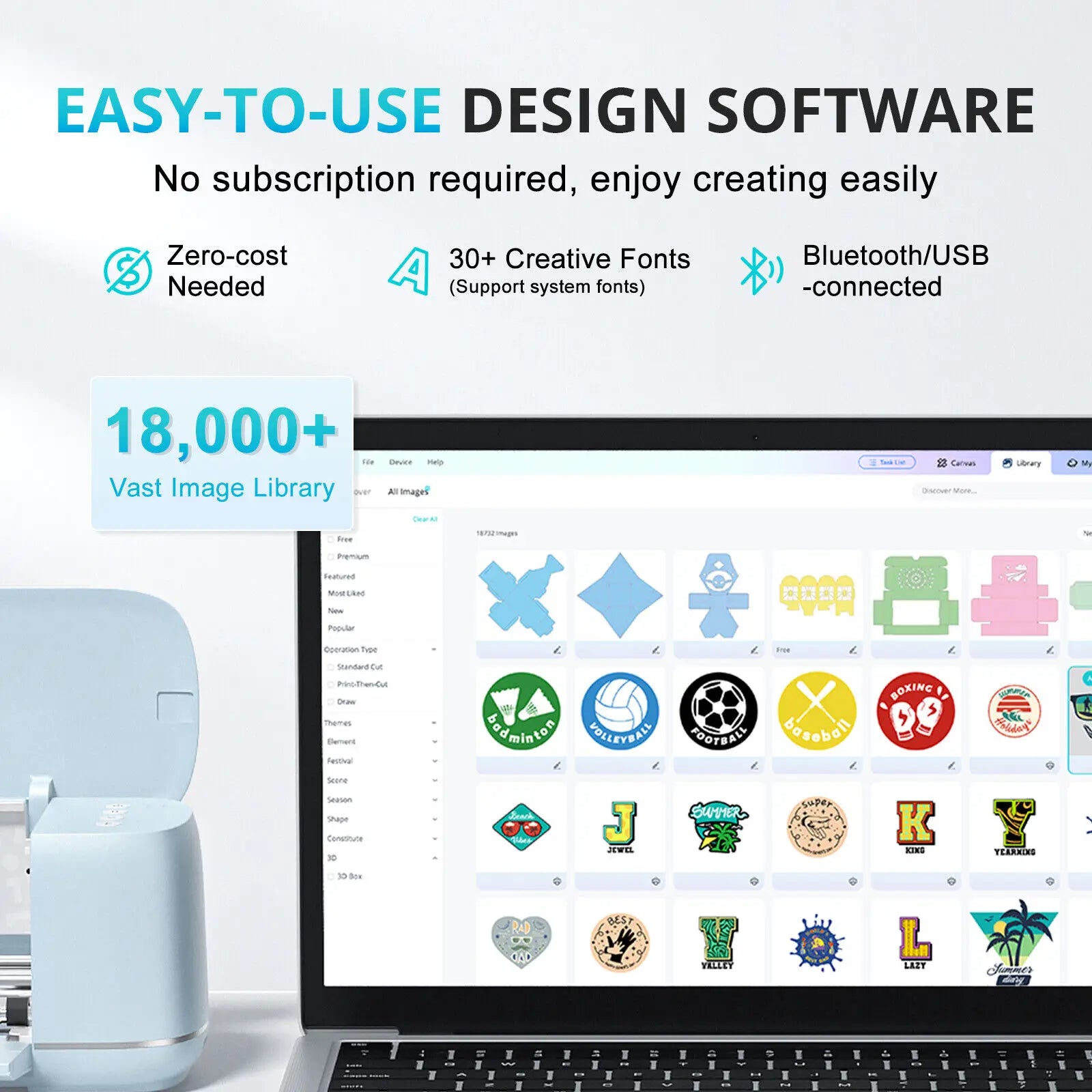 LOKLiK 5 in 1 Vinyl Cutting Machine Smart Cutting Machine Compatible with iOS Android Windows Mac Cuts 100+ Materials