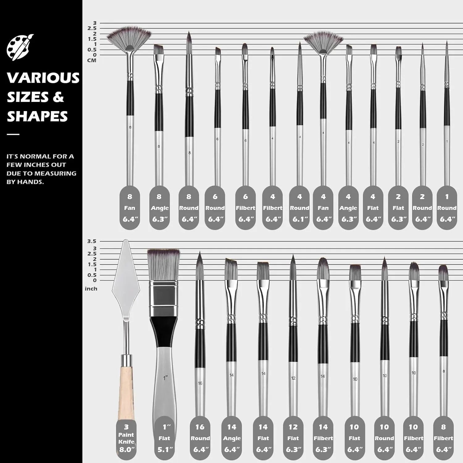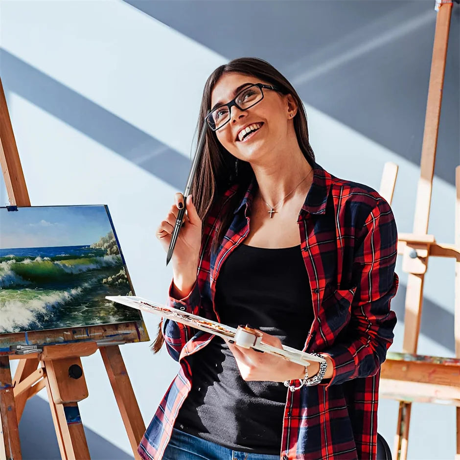 Professional 24-Piece Artist Paint Brush Set - Assorted Flat, Round, Fan & Detail Brushes with Premium Soft Bristles, Wooden Han