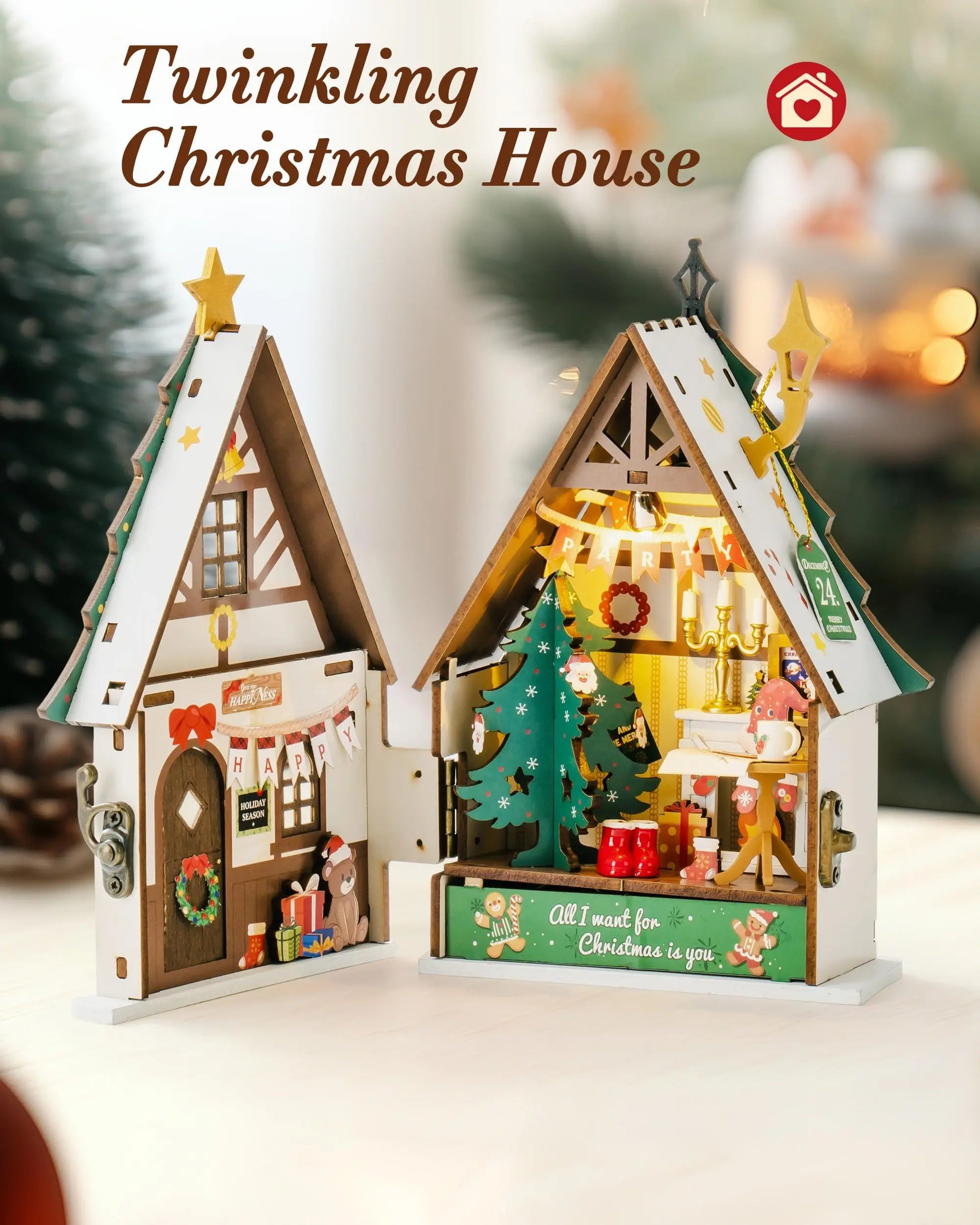 Rolife Miniature Wooden Dollhouse Collectible 3D Wooden Puzzle Home Decor Twinkling Christmas House