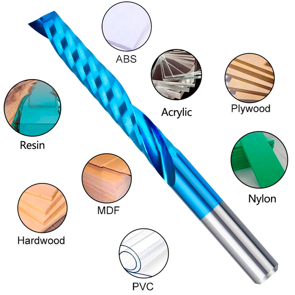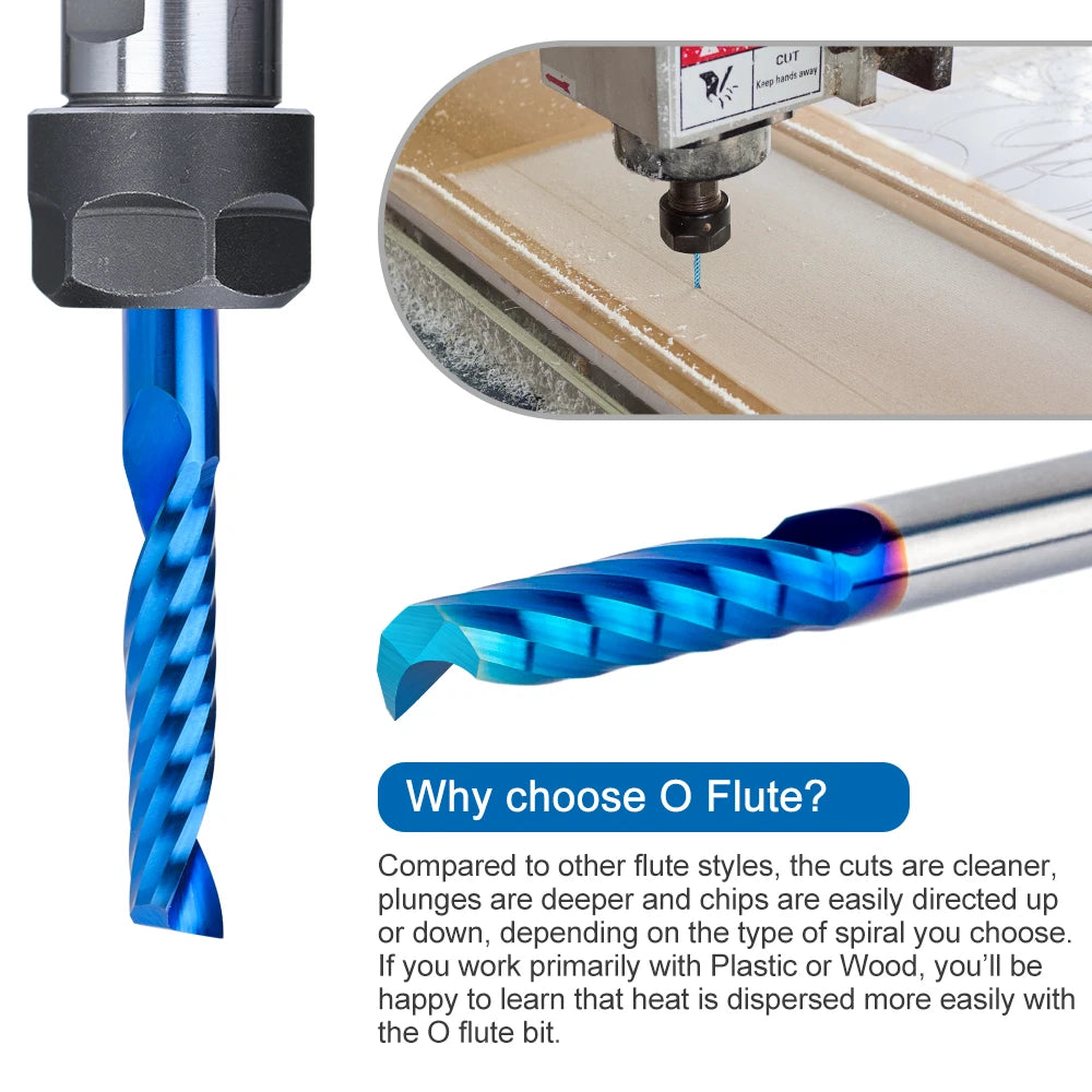 XCAN Single Flute Spiral Milling Cutter Set 1-3.175mm 10Pcs Shank CNC End for Wood MDF PVC